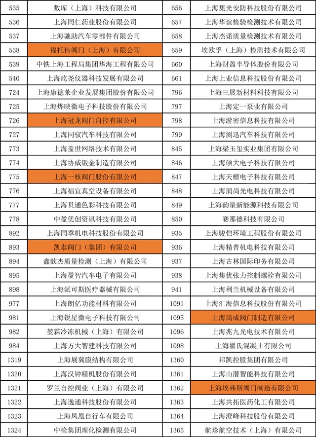 5月19日,上海市經(jīng)濟和信息化委員會公示了《2021年度上海市“專精特新”企業(yè)名單》,福托偉閥門(上海)有限公司、上海冠龍閥門自控有限公司、上海一核閥門股份有限公司、凱泰閥門(集團)有限公司、上海高成閥門制造有限公司、上海埃弗斯閥門制造有限公司6家企業(yè)成功入選。 根據(jù)工信部的...