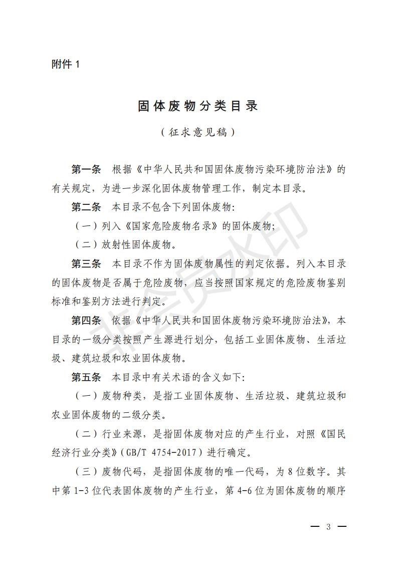 近日,生態(tài)環(huán)境部發(fā)布《固體廢物分類目錄(征求意見稿)》,公開向社會征求意見,截止時間為2022年7月20日。征求意見稿全文如下: 原標題:關(guān)于征求《固體廢物分類目錄(征求意見稿)》意見的函 相關(guān)資料下載: 附件2《固體廢物分類目錄(征求意見稿)》編制說明.pdf