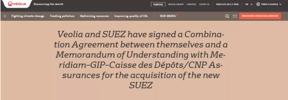 據(jù)悉,威立雅與蘇伊士的收購談判最近又出現(xiàn)了新的進展。 上周五晚間,威立雅與蘇伊士在巴黎簽署了關于“以合并為目的的和解”的協(xié)議。在協(xié)議中,威立雅同意以每股20.50歐元的價格收購蘇伊士股份,這意味著蘇伊士的市值達到了128億歐元。這個價格設定較高,威立雅目前期望能夠在今年第三季...