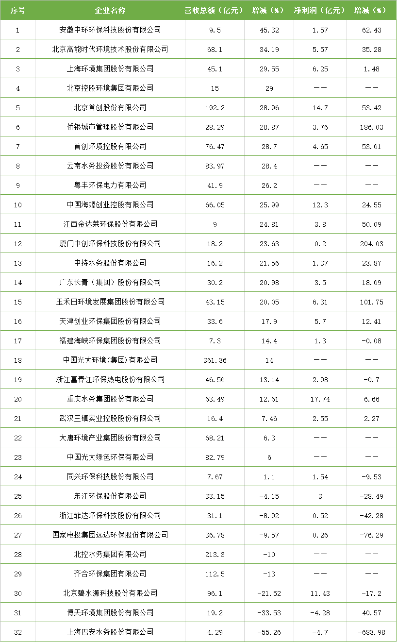環(huán)保上市企業(yè)2020年業(yè)績報(bào)告基本公開地差不多了,甚至很多企業(yè)率先發(fā)布了2021年一季度業(yè)績預(yù)告。 環(huán)保在線曾發(fā)布了【13家環(huán)保上市企業(yè)年報(bào)匯總】,現(xiàn)更新19家,來看一下各自的盈虧情況。 1、大唐環(huán)境產(chǎn)業(yè)集團(tuán)股份有限公司 2020年度,大唐環(huán)境營收約68.21億元,同比增加6.3%;毛利報(bào)11.68...