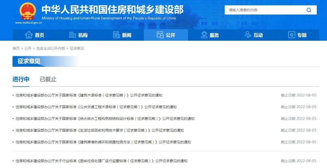 近日,住房和城鄉(xiāng)建設(shè)部辦公廳就國家標(biāo)準(zhǔn)《建筑術(shù)語標(biāo)準(zhǔn)》《公共交通工程術(shù)語標(biāo)準(zhǔn)》《給水排水工程構(gòu)筑物結(jié)構(gòu)設(shè)計標(biāo)準(zhǔn)》《生活垃圾回收利用技術(shù)要求》《建筑幕墻熱循環(huán)和結(jié)露檢測方法》《廚余垃圾處理廠運行監(jiān)管標(biāo)準(zhǔn)》公開征求意見,意見反饋截止時間為2022年8月5日。點擊下方藍(lán)色標(biāo)題了解標(biāo)準(zhǔn)詳情?!督ㄖg(shù)語標(biāo)準(zhǔn)》...