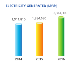 2016年錦江環(huán)境實(shí)現(xiàn)發(fā)電量增加16.6%,達(dá)到23.143億千瓦時(shí),上網(wǎng)電量增加15.1%至17.097億千瓦時(shí),供汽量增加35.7%至199萬噸。