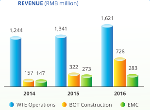 截止2016年12月底,公司已在中國的12個(gè)省、自治區(qū)額直轄市已運(yùn)行了19家垃圾焚燒發(fā)電廠,運(yùn)營日處理垃圾能力總計(jì)27430噸,裝機(jī)容量達(dá)469MW。2016年垃圾處理量增加17.4%達(dá)到813噸,實(shí)現(xiàn)了2016年稅前利潤和稅后利潤分別達(dá)到29.0%和32.3%的高增長,2016年實(shí)現(xiàn)歸屬股東的凈利潤為5.98億元,同比增長34.7%。