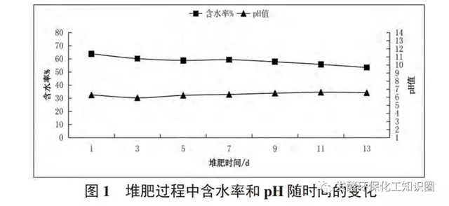 堆肥過程中含水率和PH值的變化見圖1所示。