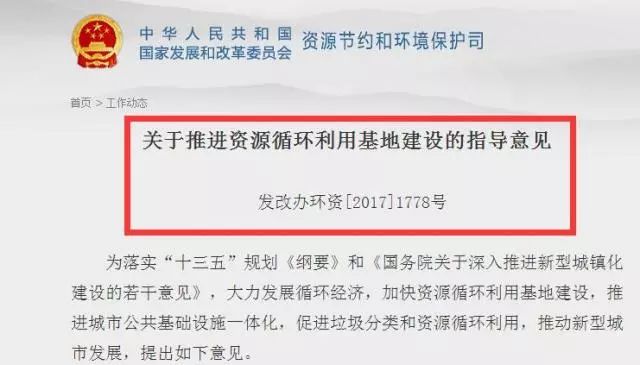為落實“十三五”規(guī)劃《綱要》和《國務院關于深入推進新型城鎮(zhèn)化建設的若干意見》,大力發(fā)展循環(huán)經(jīng)濟,加快資源循環(huán)利用基地建設,推進城市公共基礎設施一體化,促進垃圾分類和資源循環(huán)利用,推動新型城市發(fā)展,提出如下意見。