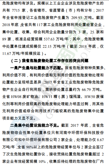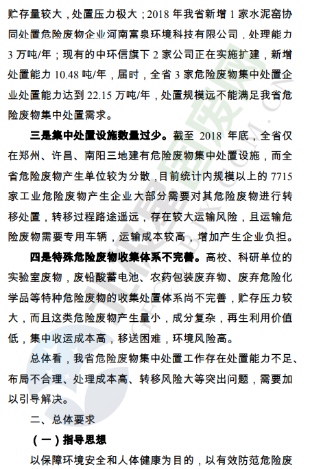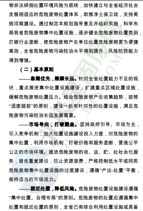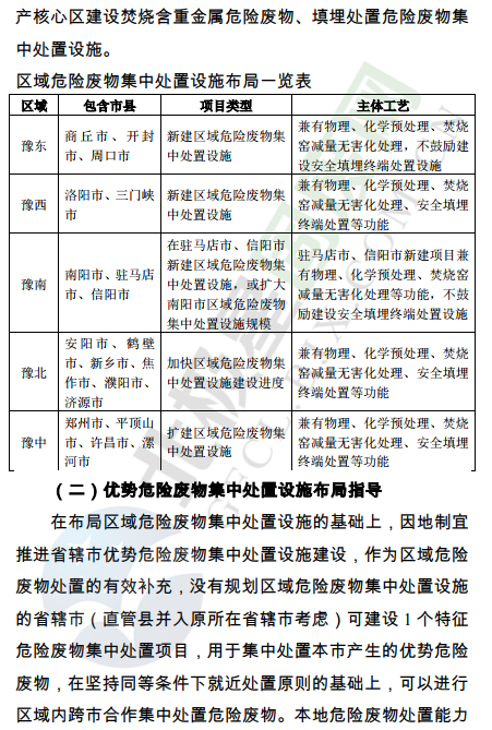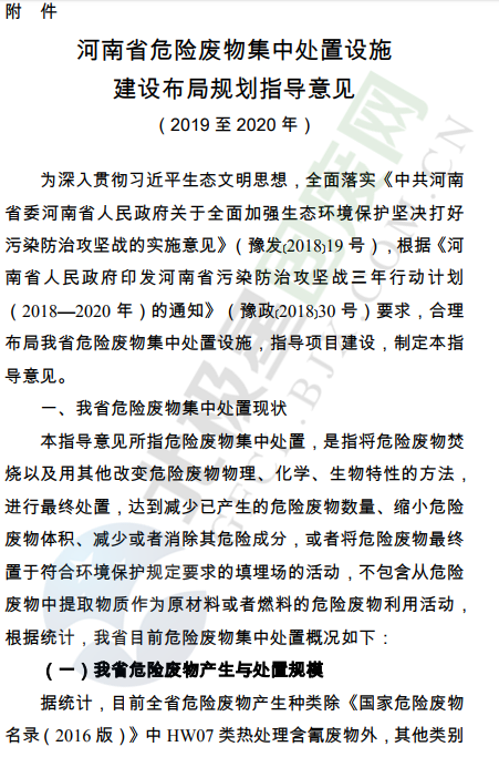 全文丨《河南省危險廢物集中處置設施建設布局規(guī)劃指導意見》