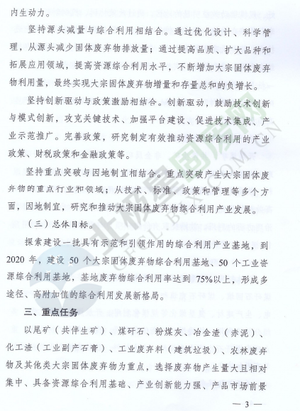 為落實(shí)《中華人民共和國經(jīng)濟(jì)和社會發(fā)展第十三個(gè)五年規(guī)劃綱要》《循環(huán)發(fā)展引領(lǐng)計(jì)劃》和《工業(yè)綠色發(fā)展規(guī)劃》,促進(jìn)產(chǎn)業(yè)集聚,提高資源綜合利用水平,推動(dòng)資源綜合利用產(chǎn)業(yè)高質(zhì)量發(fā)展,近日,國家發(fā)展改革委辦公廳和工業(yè)和信息化部辦公廳印發(fā)了關(guān)于推進(jìn)大宗固體廢棄物綜合利用產(chǎn)業(yè)集聚發(fā)展的通知。全文如下: