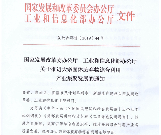 為落實《中華人民共和國經濟和社會發(fā)展第十三個五年規(guī)劃綱要》《循環(huán)發(fā)展引領計劃》和《工業(yè)綠色發(fā)展規(guī)劃》,促進產業(yè)集聚,提高資源綜合利用水平,推動資源綜合利用產業(yè)高質量發(fā)展,近日,國家發(fā)展改革委辦公廳和工業(yè)和信息化部辦公廳印發(fā)了關于推進大宗固體廢棄物綜合利用產業(yè)集聚發(fā)展的通知。