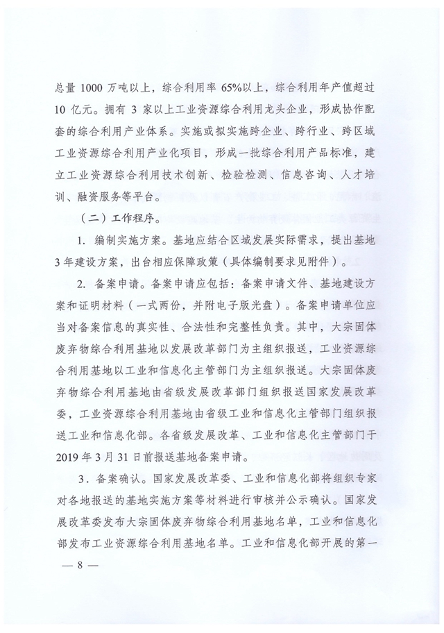 開展大宗固體廢棄物綜合利用基地建設,有助于推進大宗固體廢棄物綜合利用產業(yè)集聚發(fā)展,是不斷提高和擴大大宗固體廢棄物綜合利用技術水平、裝備能力、應用規(guī)模和領域、品質和效益等的有效途徑和重要保障。