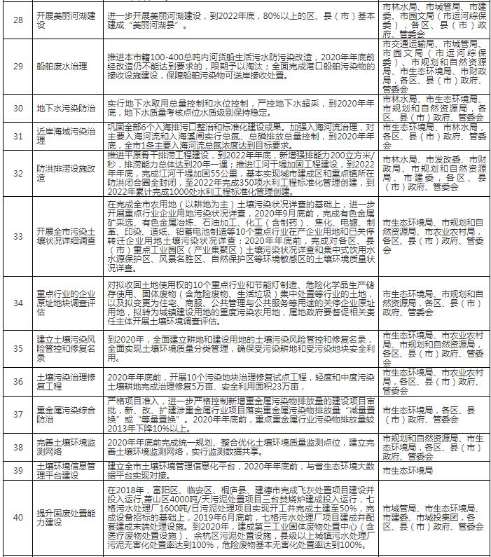 5.強(qiáng)化各類水體治理。進(jìn)一步開(kāi)展美麗河湖建設(shè),到2022年年底,80%以上的區(qū)、縣(市)基本建成“美麗河湖縣”。加快船舶水治理,推進(jìn)本市籍100-400總噸內(nèi)河貨船生活污水防污染改造,2020年年底前經(jīng)改造仍不能達(dá)到要求的,限期予以淘汰;全面完成港口船舶污染物的接收設(shè)施建設(shè),保障船舶污染物可送岸接收處置。加強(qiáng)地下水污染防治,實(shí)行地下水取用總量控制和水位控制,嚴(yán)控地下水超采,到2020年年底,地下水質(zhì)量考核點(diǎn)位水質(zhì)級(jí)別保持穩(wěn)定。加強(qiáng)陸海統(tǒng)籌,深入推進(jìn)近岸海域污染防治,鞏固全部6個(gè)入海排污口整治和標(biāo)準(zhǔn)化建設(shè)成果。加強(qiáng)入海河流治理,對(duì)主要入海河流和入海溪閘實(shí)行總氮、總磷排放總量控制,到2020年年底,全市1條主要入海河流總氮濃度達(dá)到目標(biāo)要求。加強(qiáng)防洪排澇設(shè)施改造,推進(jìn)平原骨干排澇工程建設(shè),到2022年年底,新增強(qiáng)排能力200立方米/秒,排澇能力總體達(dá)到20年一遇;推進(jìn)江河干堤加固工程建設(shè),到2022年年底,完成江河干堤加固55公里,基本實(shí)現(xiàn)城市建成區(qū)和重點(diǎn)鎮(zhèn)所在防洪閉合圈全封閉;完成1000處水利工程標(biāo)準(zhǔn)化管理創(chuàng)建。