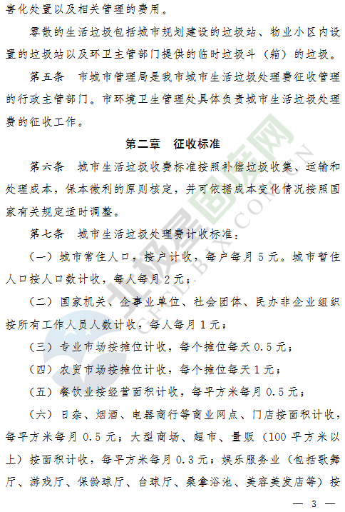 (一)城市常住人口,按戶計(jì)收,每戶每月5元。城市暫住人口按人口數(shù)計(jì)收,每人每月2元;