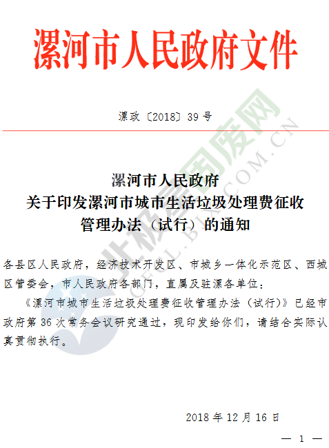 漯河市城市生活垃圾處理費(fèi)征收管理辦法答疑解惑