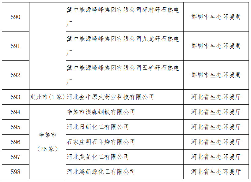 河北省2019年度開展強制性清潔生產(chǎn)審核企業(yè)名單