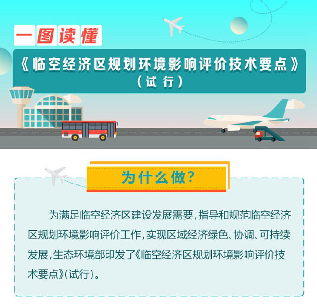 為滿足臨空經(jīng)濟(jì)區(qū)建設(shè)發(fā)展需要,指導(dǎo)和規(guī)范臨空經(jīng)濟(jì)區(qū)規(guī)劃環(huán)境影響評(píng)價(jià)工作,實(shí)現(xiàn)區(qū)域經(jīng)濟(jì)綠色、協(xié)調(diào)、可持續(xù)發(fā)展,近日,生態(tài)環(huán)境部印發(fā)了《臨空經(jīng)濟(jì)區(qū)規(guī)劃環(huán)境影響評(píng)價(jià)技術(shù)要點(diǎn)》(試行)。臨空經(jīng)濟(jì)區(qū)規(guī)劃環(huán)境影響評(píng)價(jià)為什么做?誰(shuí)來做?重點(diǎn)做什么?怎么做?
