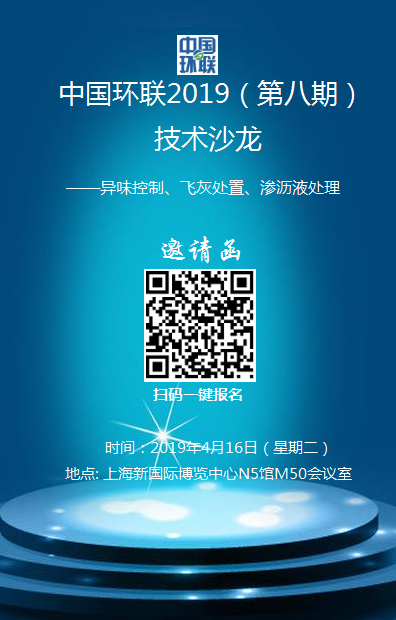 2019年4月16日, 中國環(huán)聯(lián)2019(第八期)技術沙龍——垃圾處理設施異味治理、焚燒飛灰處理處置、滲瀝液處理典型技術案例交流會將在第二十屆中國環(huán)博會(上海)期間召開。屆時,將邀請典型案例企業(yè)代表、行業(yè)精英、資深專家等參加,進行深入研討與交流,傳播先進理念、分享成功經驗、共同探討行業(yè)發(fā)展最新趨勢。望有關單位積極踴躍參加。