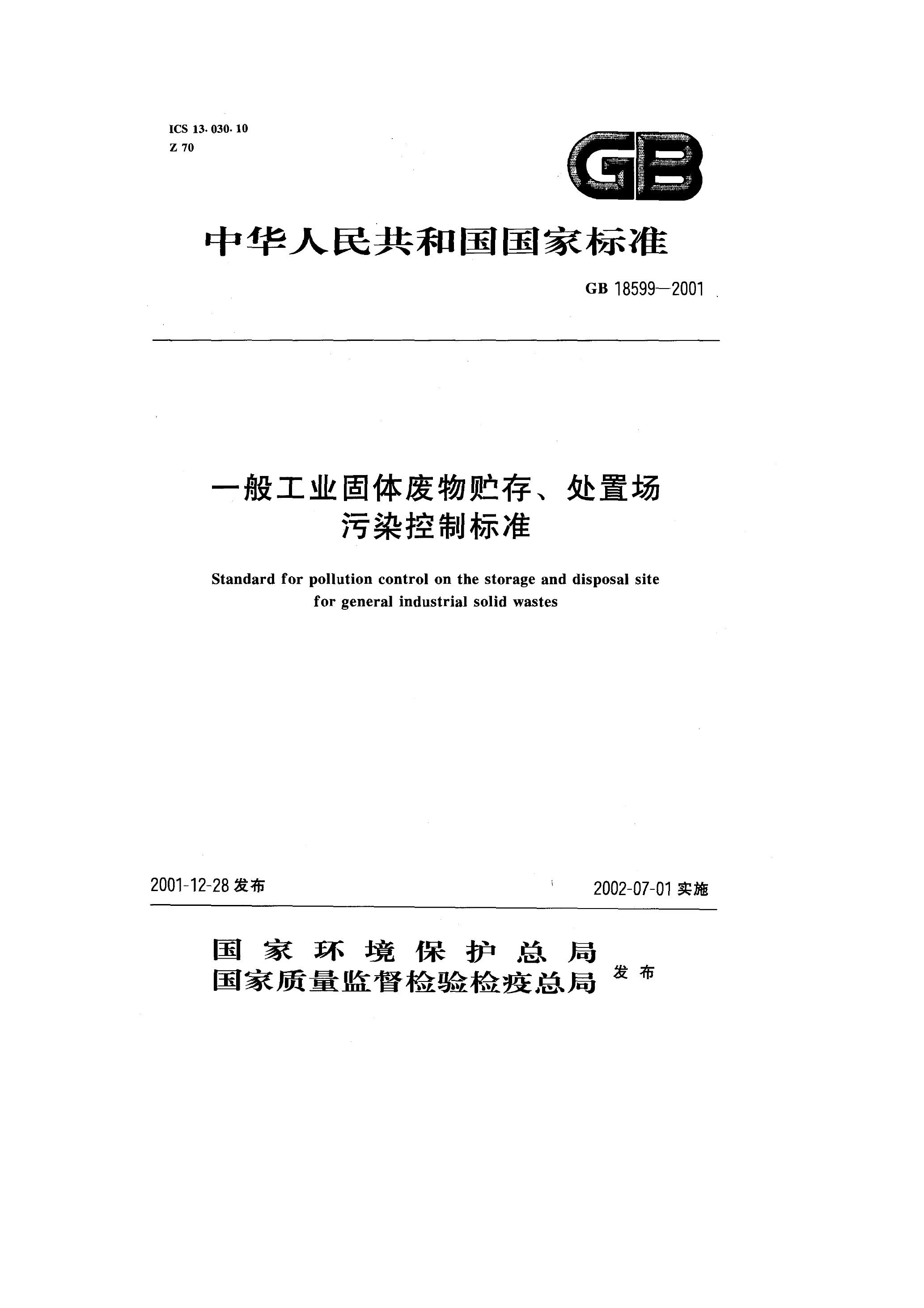 一般工業(yè)固體廢物貯存、處置場污染控制標(biāo)準(zhǔn)(GB 18599-2001)