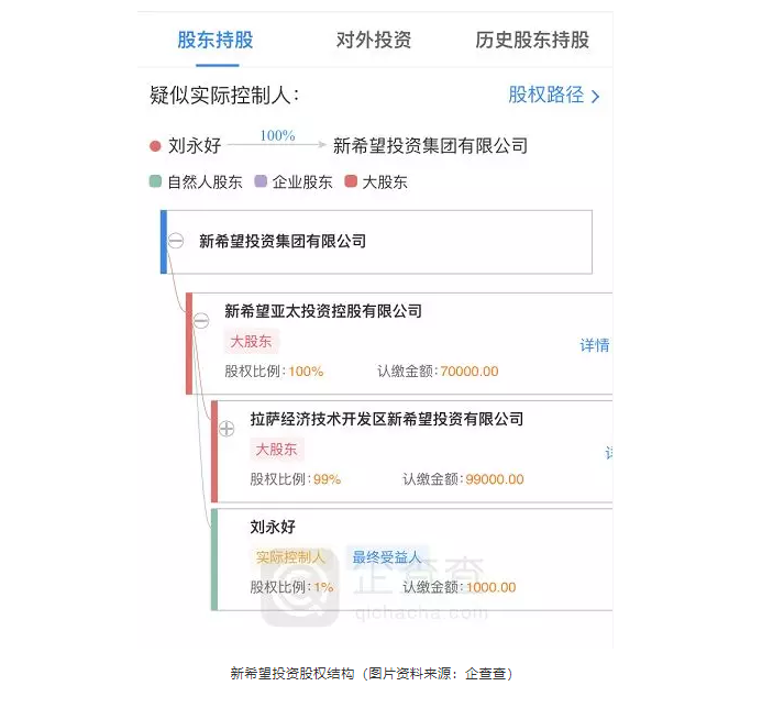 據(jù)悉,新希望投資是新希望集團(tuán)旗下的投資平臺(tái),由新希望亞太投資控股有限公司控股,注冊(cè)地址位于拉薩經(jīng)濟(jì)開(kāi)發(fā)區(qū)。經(jīng)營(yíng)范圍包括:創(chuàng)業(yè)投資(不得從事?lián):头康禺a(chǎn)業(yè)務(wù);不得參與發(fā)起或管理公募或私募證券投資基金、投資金融衍生品);股權(quán)投資(不含公募基金。不得從事證券、期貨類投資;不得參與發(fā)起或管理公募或私募證券投資基金、投資金融衍生品;不得從事房地產(chǎn)和擔(dān)保業(yè)務(wù));投資管理(不含金融和經(jīng)紀(jì)業(yè)務(wù)。不得從事證券、期貨類投資;不得向非合格投資者募集、銷售、轉(zhuǎn)讓私募產(chǎn)品或者私募產(chǎn)品收益權(quán));資產(chǎn)管理(不含金融資產(chǎn)管理和保險(xiǎn)資產(chǎn)管理)等。