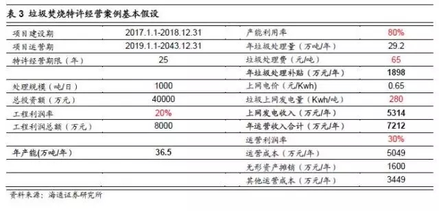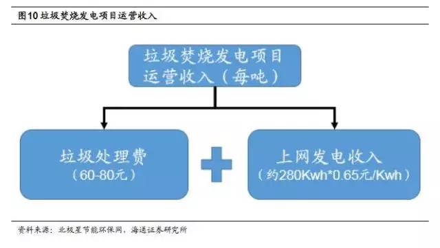 BOT模式下,垃圾焚燒項目的收入主要來自建設階段的工程收入和運營階段的運營收入。垃圾焚燒發(fā)電項目運營階段收入主要為垃圾處理費(政府補貼)以及上網(wǎng)發(fā)電收入。不同項目的垃圾處理費價格差異較大,大致在50-150元/噸的區(qū)間里,目前大部分項目的平均水平在60-80元/噸。根據(jù)2012年4月發(fā)布的《國家發(fā)展改革委關于完善垃圾焚燒發(fā)電價格政策的通知》,每噸生活垃圾折算上網(wǎng)電量為280千瓦時,執(zhí)行全國統(tǒng)一垃圾發(fā)電標桿電價每千瓦時0.65元(含稅,增值稅即征即退);超過部分電量執(zhí)行當?shù)赝惾济喊l(fā)電機組上網(wǎng)電價。