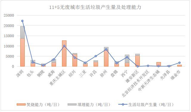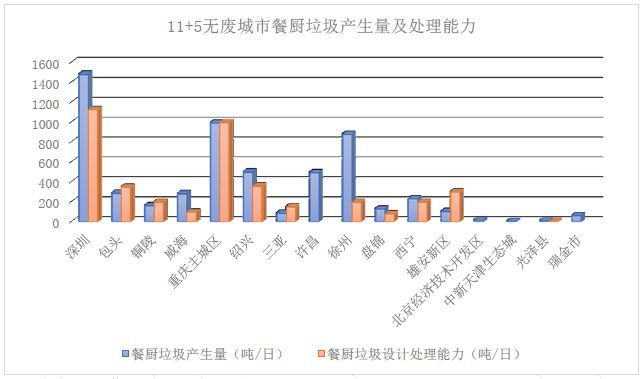 入選城市中固廢管理水平和信息公開程度差異明顯,11個(gè)試點(diǎn)城市以百萬人口級(jí)為主,是我國大多數(shù)地級(jí)市的典型代表。目前大多已有或在建有生活垃圾焚燒設(shè)施和餐廚垃圾集中處理設(shè)施。5個(gè)特例地區(qū)由于實(shí)際情況不同差異較大:雄安新區(qū)規(guī)劃處理能力、技術(shù)路線明顯較優(yōu),北京、天津兩開發(fā)區(qū)由于區(qū)域內(nèi)人口及面積所限,大多采用區(qū)域協(xié)同、小型分散處理的方式,但無害化水平均相對(duì)較高,地方縣、縣級(jí)市垃圾集中處置水平有待提升。