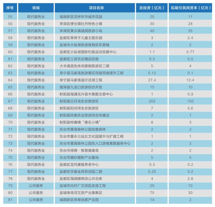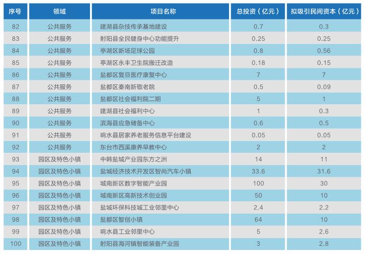 2019年鹽城市重大項目向民間資本(社會資本)推介項目