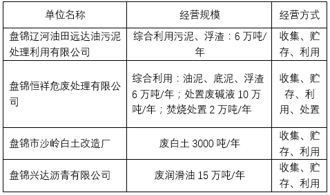 截止2017年,盤錦市擁有危險廢棄物經營資質的單位4家,如下表所示。
