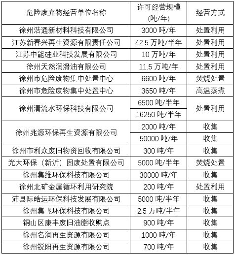 表格 6 徐州市危險廢棄物經營單位一覽表