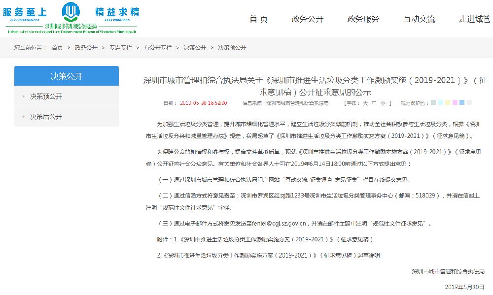 近日,深圳市城市管理和綜合執(zhí)法局網(wǎng)站發(fā)布關于《深圳市推進生活垃圾分類工作激勵實施方案(2019-2021)》(征求意見稿)公開征求意見的公示,2019-2021年期間,深圳市每年安排生活垃圾分類激勵補助資金9375萬元,其中,各區(qū)財政共承擔6250萬元,市財政安排3125萬元。生活垃圾分類積極個人資金補助為1000元。