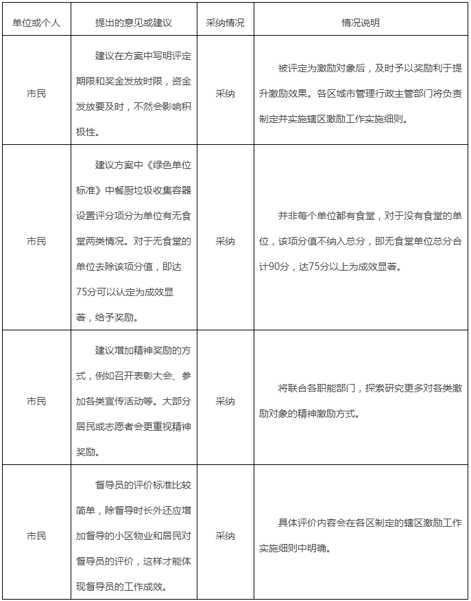 以上為征求意見稿的內容。意見征集時間為5月30日至6月14日?,F(xiàn)將征求意見采納情況匯總如下: