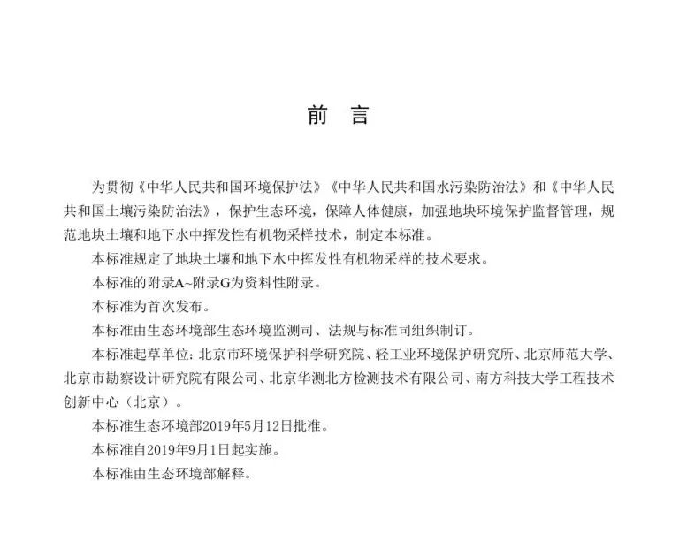 為貫徹《中華人民共和國環(huán)境保護(hù)法》《中華人民共和國水污染防治法》和《中華人民共和國土壤污染防治法》,保護(hù)生態(tài)環(huán)境,保障人體健康,加強(qiáng)地塊環(huán)境保護(hù)監(jiān)督管理,規(guī)范地塊土壤和地下水中揮發(fā)性有機(jī)物采樣技術(shù),制定本標(biāo)準(zhǔn)。本標(biāo)準(zhǔn)規(guī)定了地塊土壤和地下水中揮發(fā)性有機(jī)物采樣的技術(shù)要求。本標(biāo)準(zhǔn)的附錄A~附錄G為資料性附錄。本標(biāo)準(zhǔn)為首次發(fā)布。