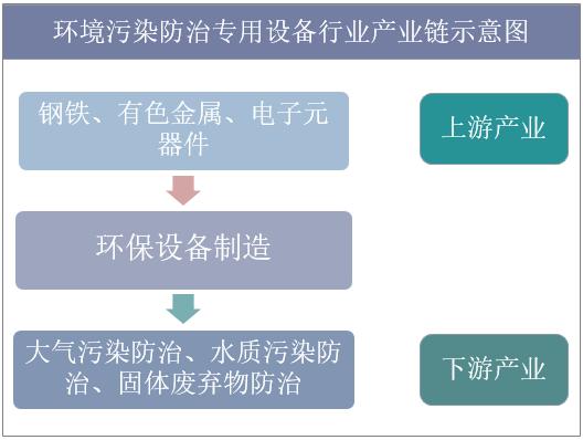 環(huán)境污染防治專(zhuān)用設(shè)備主要包括環(huán)保設(shè)備行業(yè)專(zhuān)用設(shè)備、廢舊物品加工機(jī)械,以及工業(yè)材料回收專(zhuān)用設(shè)備,其中環(huán)保設(shè)備行業(yè)專(zhuān)用設(shè)備主要包括大氣污染防治設(shè)備、固體廢棄物處理設(shè)備、噪聲與振動(dòng)控制設(shè)備等。其上游主要是鋼鐵、有色金屬、電子元器件等產(chǎn)業(yè),下游則主要包括大氣污染防治、水質(zhì)污染防治和固體廢棄物防治等環(huán)保產(chǎn)業(yè)。