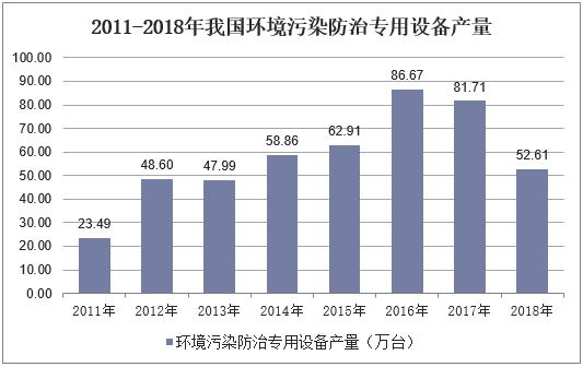 隨著國(guó)家對(duì)環(huán)保的日益重視,近年來(lái)我國(guó)環(huán)境污染防治專(zhuān)用設(shè)備產(chǎn)量呈現(xiàn)上升趨勢(shì),2016年產(chǎn)量達(dá)最高產(chǎn)量86.67萬(wàn)臺(tái),2016-2018年我國(guó)環(huán)境污染防治專(zhuān)用設(shè)備產(chǎn)量有所下滑,2018年為52.61萬(wàn)臺(tái),同比2017年減少了29.11萬(wàn)臺(tái)。