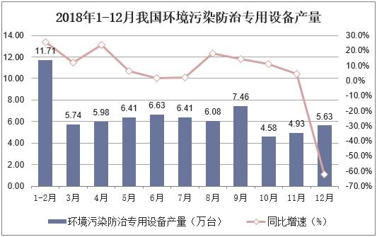 從2018年全年環(huán)境污染防治專(zhuān)用設(shè)備的生產(chǎn)情況來(lái)看,較之2017年,2018年1-12月份單月產(chǎn)量波動(dòng)較為明顯,其中1-12月產(chǎn)量同比均有所上漲,1-2月我國(guó)環(huán)境污染防治專(zhuān)用設(shè)備產(chǎn)量合計(jì)11.71萬(wàn)臺(tái),產(chǎn)量下滑主要出現(xiàn)在12月份,單月產(chǎn)量5.63萬(wàn)臺(tái),比2017年同期下降了62.2%。