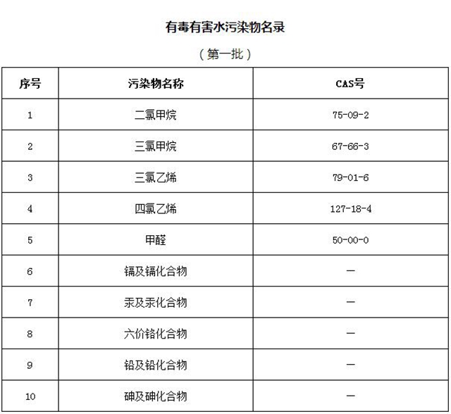 關(guān)于發(fā)布《有毒有害水污染物名錄(第一批)》的公告