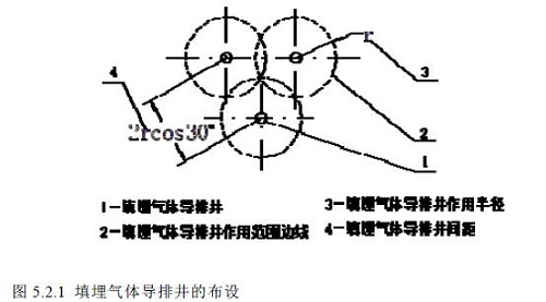 5.1.1 填埋氣體的導排設施宜采用導氣井與導氣盲溝相結合的方式,導排井和導排盲溝的布設數(shù)量應根據(jù)單個導氣井和導氣盲溝的導氣作用范圍和垃圾堆體面積確定,垃圾堆體填埋氣體導氣設施覆蓋率應不小于95%。