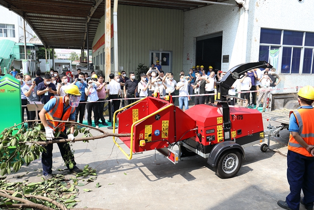 交流會后,參會代表一同前往斯瑞德公司,觀看斯瑞德大件垃圾處理系統(tǒng)、丹麥 TP 樹枝削片機、奧地利 Komptech 履帶式移動破碎機、斯瑞德自主研發(fā)的移動式破碎機等環(huán)保固廢破碎設(shè)備的實物現(xiàn)場演示。