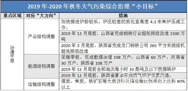 汾渭平原——①加快焦化行業(yè)結(jié)構(gòu)升級,淘汰老舊焦?fàn)t②加大散煤整治,2019采暖季前完成198萬戶③推進煤炭和焦炭運輸“公轉(zhuǎn)鐵”