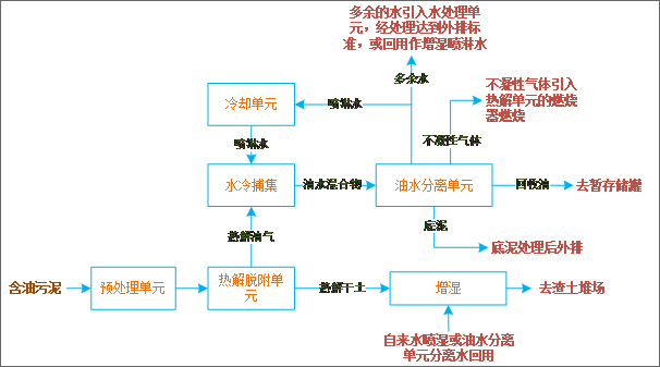 工藝流程:熱洗滌+熱脫附,處理后污泥含油量小于2%。
