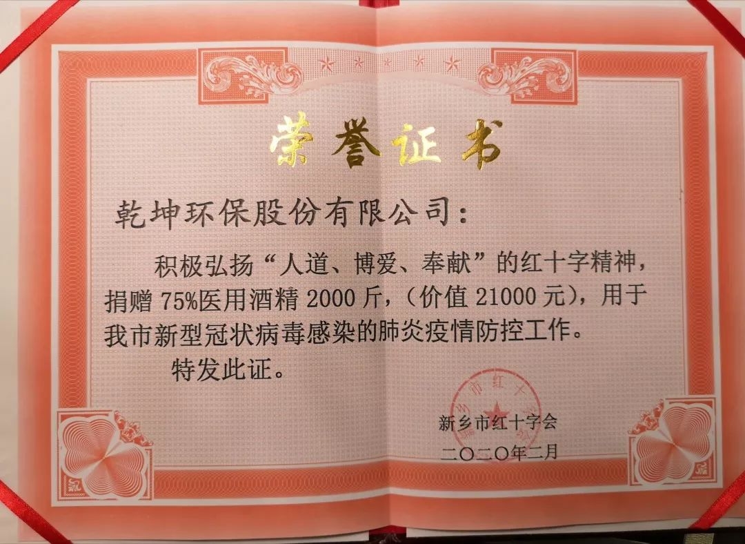 早在2020年1月27日,疫情開始之初,乾坤環(huán)保就向河南省青少年發(fā)展基金會捐款5000元,用于馳援鄂豫、抗擊疫情。