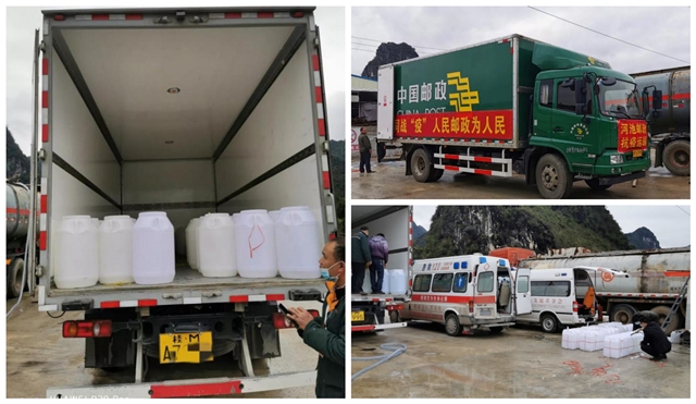 目前已捐贈的單位有中共廣西河池市統(tǒng)戰(zhàn)部、來賓市工信局、合山市政府、都安縣政府、天峨縣政府、象州縣政府、武宣縣政府、沂城縣政府、金秀縣城府、上思統(tǒng)戰(zhàn)部等,捐贈的消毒劑將投放于各級地方公共區(qū)域消毒使用,確保公眾區(qū)域的安全衛(wèi)生,保障人民群眾的安全健康。