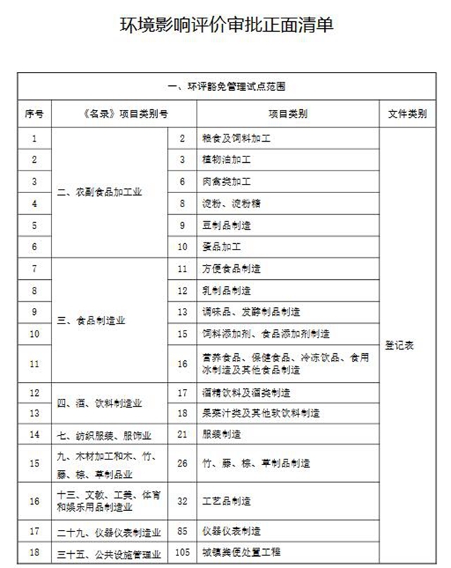 附件:1.環(huán)境影響評價審批正面清單
