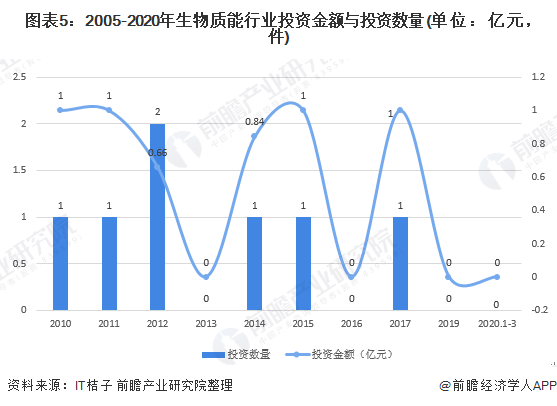 從生物質(zhì)能行業(yè)的投資規(guī)模來(lái)看,2017年投資規(guī)模1億元,2019年全年生物質(zhì)能行業(yè)的投資金額為0億元,2020年1-3月中旬新能源行業(yè)的投資金額達(dá)到0億元。