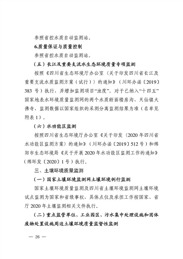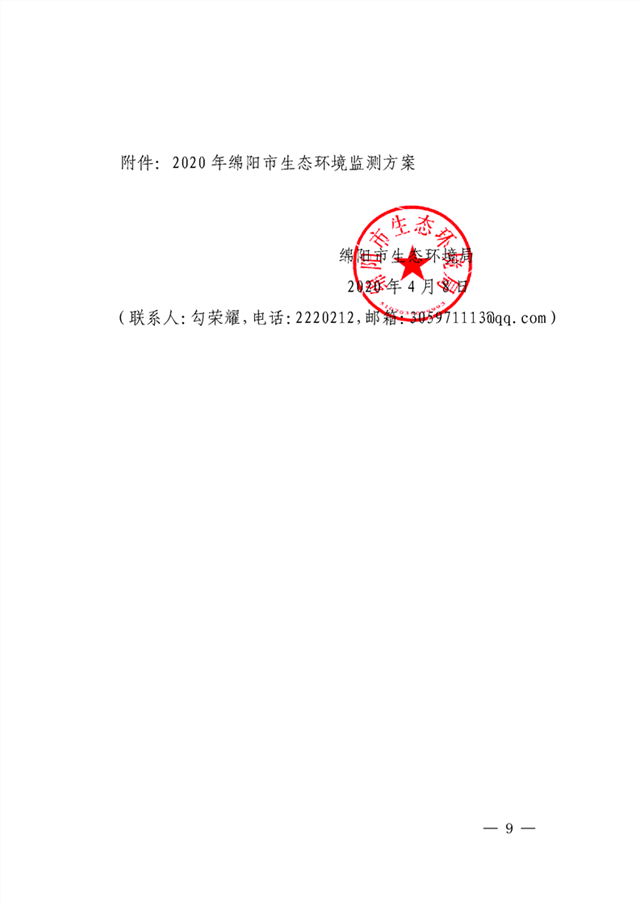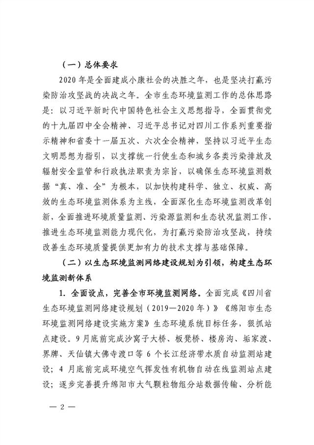 綿陽市生態(tài)環(huán)境局關(guān)于印發(fā)《2020年綿陽市生態(tài)環(huán)境監(jiān)測方案》的通知