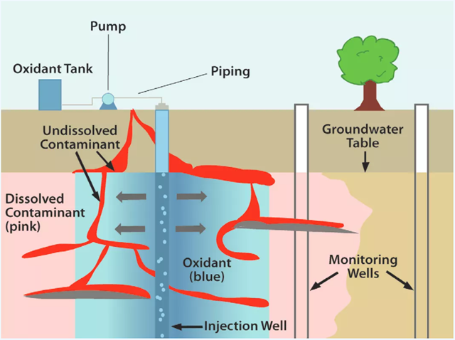 原位化學(xué)氧化(ISCO)是一種土壤和/或地下水修復(fù)技術(shù),它將化學(xué)氧化劑引入被污染的地下,以便與污染物發(fā)生反應(yīng),從而將污染物轉(zhuǎn)化為危害較小的物質(zhì)。多種氧化劑適用于ISCO項(xiàng)目,具有不同的化學(xué)性質(zhì)、氧化電位和輸送系統(tǒng),可應(yīng)用于特定場地條件。在選擇氧化劑時(shí)應(yīng)考慮多種因素,包括地球化學(xué)、污染物類型和注入選擇。