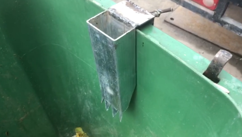 通常情況下,小區(qū)中產(chǎn)生的廚余垃圾和飯館中產(chǎn)生的“泔水”有著本質(zhì)的區(qū)別。“就拿咱們普通居民家庭的廚余垃圾桶來說,很少有居民家的廚余垃圾桶里扔的全是有異味的剩飯剩菜,大部分家庭的廚余垃圾桶里扔的其實是摘下來的菜葉、果核果皮、茶葉渣、雞蛋殼、花生瓜子皮等比較干燥的垃圾。這樣的廚余垃圾,就算敞著口在屋里擺上一天,甚至在家里過夜,其實都不會有太大的味道?!背枪芪ぷ魅藛T解釋說,但是如果將異味較大的湯湯水水一股腦倒入廚余垃圾桶,會導(dǎo)致整桶廚余垃圾“泡湯”,暴曬發(fā)酵后更容易產(chǎn)生異味。所以,才會建議居民在投放廚余垃圾前,先將水分瀝干,避免“有味”。另外,按照《北京市居住小區(qū)垃圾分類實施辦法》規(guī)定,廚余垃圾要“日產(chǎn)日清”,在垃圾投放高峰期,小區(qū)可以適當(dāng)增加收運頻次或增加收集容器數(shù)量,確保垃圾桶不滿冒。廢舊鋼管被截成尖銳鋸齒狀倒刺的短棍,焊接成“L”形橫梁后,掛在廚余垃圾桶桶沿,一個廚余垃圾“破袋神器”便安裝完畢。▲ 破袋神器