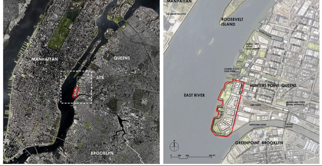獵人角南濱水公園分為兩期建造,第一期工程于2013年夏季開放,包括30英畝(約12.14公頃)的后工業(yè)濱水區(qū)改造,以及1970年以來紐約市最大的經濟適用住房建設項目。該項目包括5000套公寓的計劃,而其中至少60%的單元將被指定為中低收入家庭的經濟適用房。第二期于2018年夏正式開放,基于原有的5.5英畝(約2.23公頃)的后工業(yè)遺址,將其打造成了一個全新的濱水公園。一期和二期的建成開放,實現了項目最初的構想——建立一個360度全方位欣賞紐敦河(Newtown Greek)的城市空間。