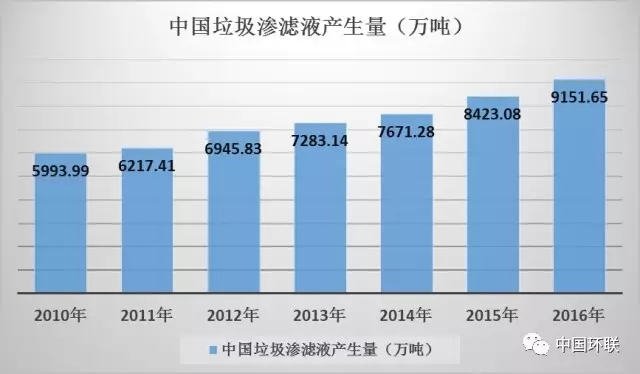 根據(jù)前瞻產(chǎn)業(yè)研究院發(fā)布的報(bào)告, 2016年,國(guó)內(nèi)垃圾滲濾液產(chǎn)生量約為9152萬噸,日均產(chǎn)生量約為25萬噸。