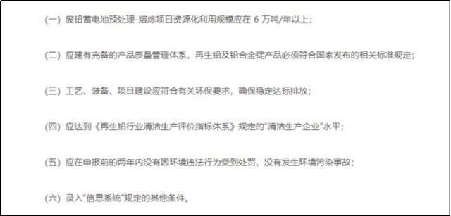 關(guān)于蓄電池的資源利用,《征求意見(jiàn)稿》提出了園區(qū)化管理和企業(yè)管理兩種。其中規(guī)定廢鉛蓄電池資源化利用項(xiàng)目應(yīng)位于功能定位相符、環(huán)?;A(chǔ)設(shè)施齊全的產(chǎn)業(yè)園區(qū)內(nèi);各地市應(yīng)提出轄區(qū)內(nèi)符合條件的規(guī)范資源化利用企業(yè),經(jīng)行業(yè)評(píng)議、部委合議后錄入“信息系統(tǒng)”,具體條件如下: