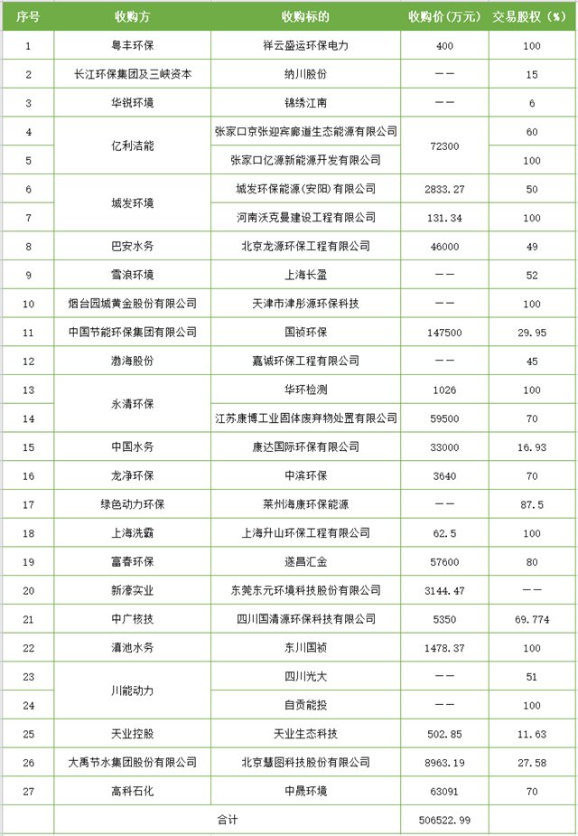 本文對(duì)上半年主要的環(huán)保股權(quán)更迭事件進(jìn)行簡(jiǎn)要梳理(僅供參考):