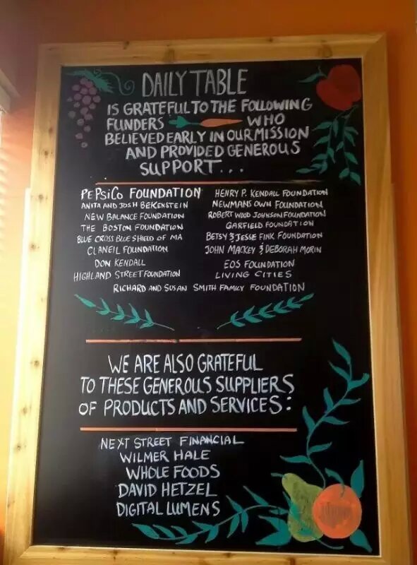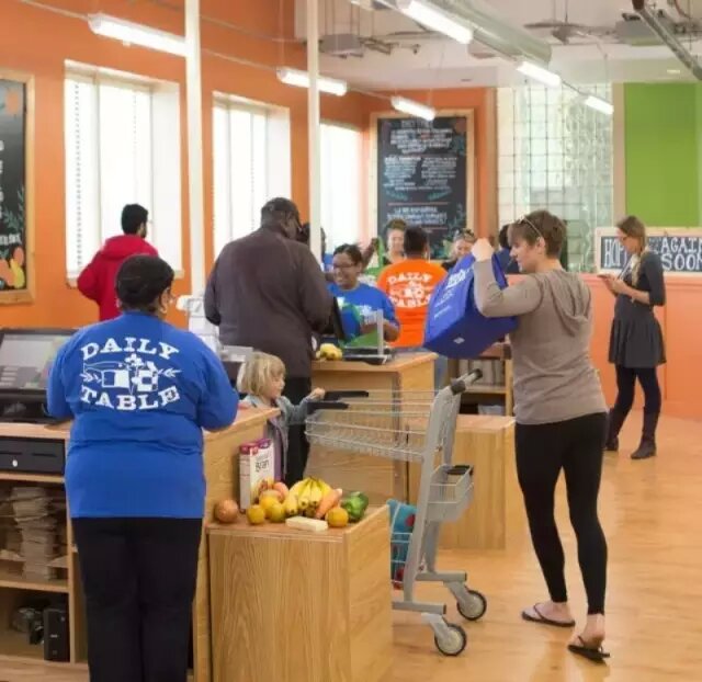 去年,他在大波士頓地區(qū)的Dorchester創(chuàng)建了第一家Daily Table,專門為低收入者提供健康、營養(yǎng)、低價的食品。這些食品來源主要是廠商生產(chǎn)過量沒有售出以及臨近保質(zhì)期或最佳食用日期的食品。它們多由生產(chǎn)商、供貨商、分銷商、食物救濟(jì)組織捐贈,也有一部分通過購買獲得,在Daily Table的售價通常僅為其他超市的1/3。