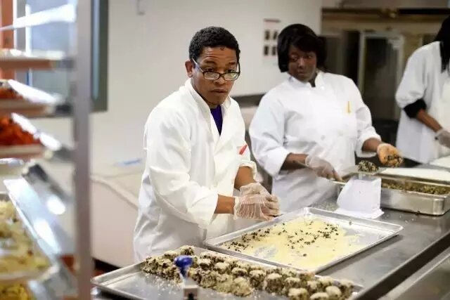 店里首席廚師也來頭不小,Ismail Samad先生曾供職于包括米其林在內(nèi)的多家餐廳。現(xiàn)在他的任務(wù)可不只是將食物做好吃那么簡單,挑戰(zhàn)多著呢。試想2000磅胡蘿卜擺在你面前,需要采用有創(chuàng)造性的方法烹飪并要易于保存,然后賣給經(jīng)濟(jì)收入較低的居民,這是什么感覺?而他每天都要帶領(lǐng)團(tuán)隊面臨這種挑戰(zhàn)。同時,這些成品必須經(jīng)過膳食指南的嚴(yán)格檢驗以保證健康營養(yǎng)。此外,重要的話說三遍,便宜。每份主菜售價在1.79-4.99美元之間,配菜為50美分-1美元,湯為1.99-3.99美元。
